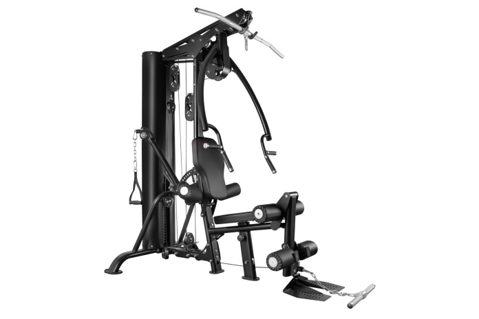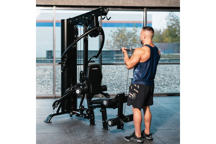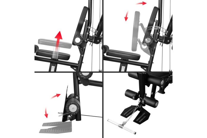 Wielofunkcyjność – atlas wyposażony w wyciąg górny i dolny, ramiona do rozpiętek i wyciskania, stanowisko do wyprostów nóg.