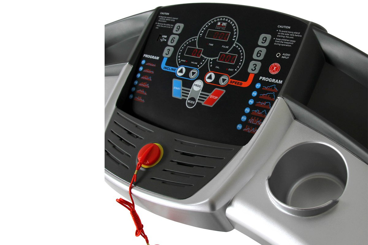 Stabilna konstrukcja zapewnia bezpieczeństwo treningu, a antypoślizgowe stopki umieszczone po bokach pasa minimalizują ryzyko poślizgnięcia się w razie nagłego zaprzestania biegu. Komputer z ekranem LCD kontroluje najważniejsze parametry treningu oraz umożliwia wybór różnorodnych programów treningowych.