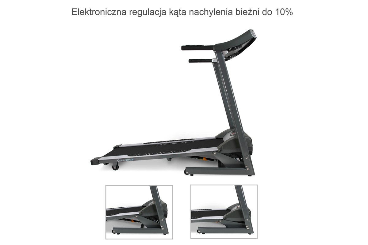 REGULACJA NACHYLENIA: Za pomocą zmiany kąta nachylenia bieżni możesz regulować intensywność swoich treningów. Dzięki temu możesz czerpać z nich większe korzyści. Bieżnia BT 3133P umożliwia zmianę kąta nachylenia o 10%.