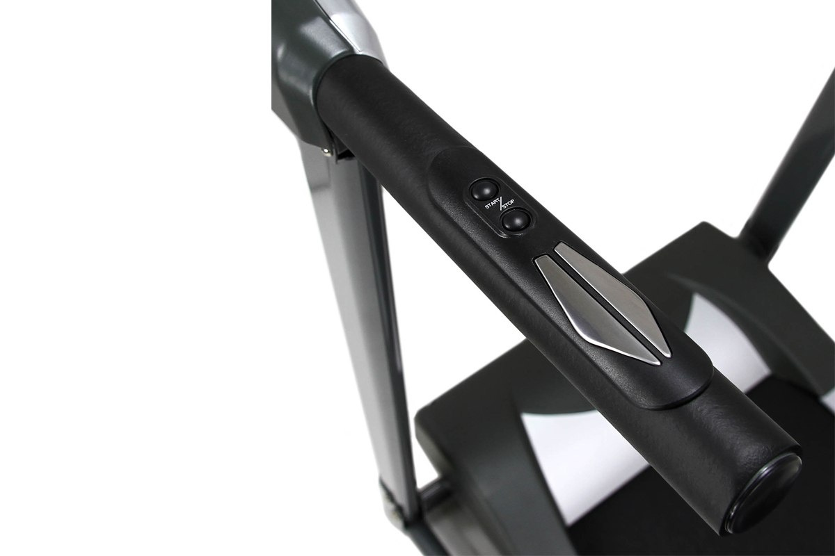 ANTYPOŚLIZGOWE STOPKI: Po bokach pasa bieżni umieszczone są antypoślizgowe stopki. Zwiększają one bezpieczeństwo użytkownika. Gdybyś nagle musiał przerwać trening, nakładki minimalizują ryzyko poślizgnięcia się.