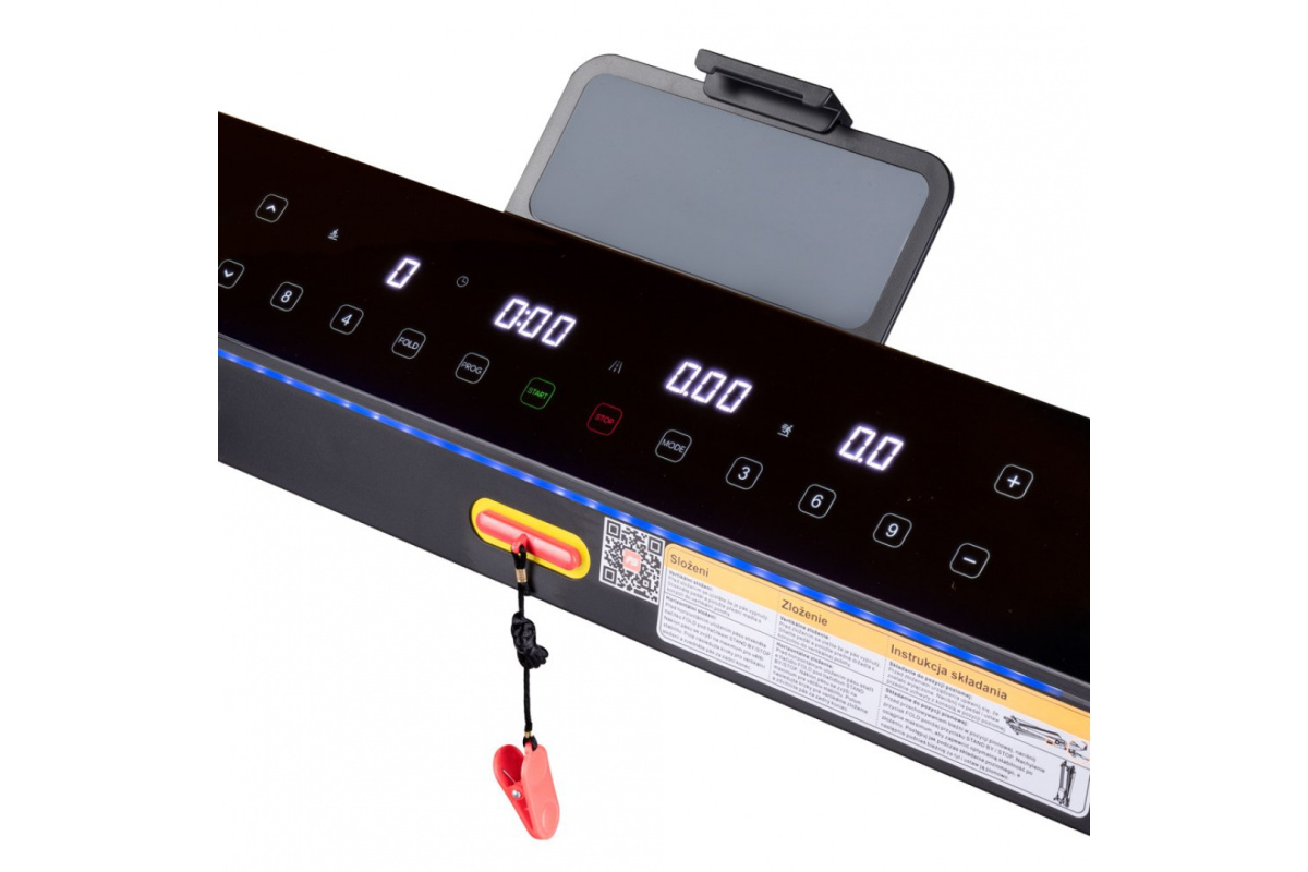 • Kolorowy podświetlany panel sterowania, który zmienia kolory w zależności od szybkości poruszania się obszaru do biegania