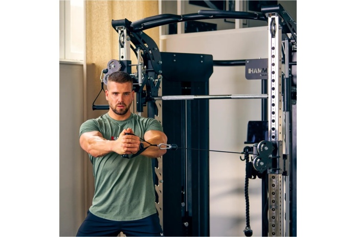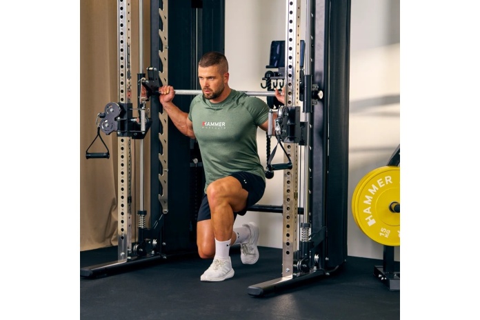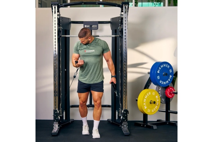 Od marki HAMMER MAXIMUM to uniwersalna stacja do ćwiczeń, stworzona z myślą o użytkownikach na każdym etapie zaawansowania. Dzięki nowoczesnemu systemowi podwójnych bloczków oraz dwóm stosom obciążników po 80 kg umożliwia wykonywanie szerokiego zakresu ćwiczeń angażujących całe ciało.