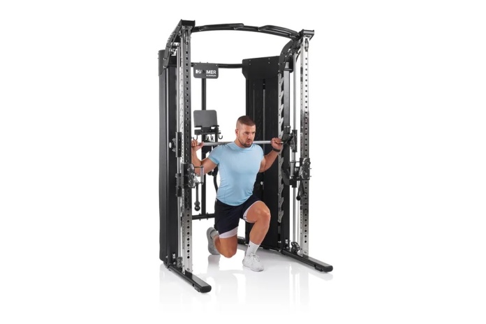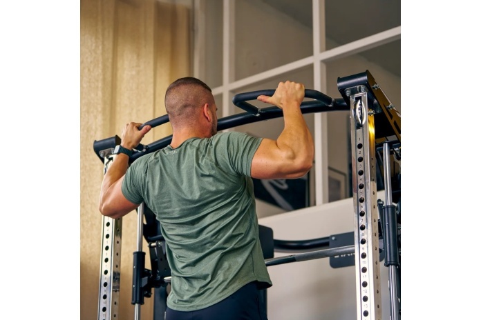 • Multi-press z mechanizmem obrotowym - prowadzi sztangę z dodatkowymi zabezpieczeniami, co sprawia, że sprzęt sprawdzi się zarówno u osób początkujących, jak i zaawansowanych.