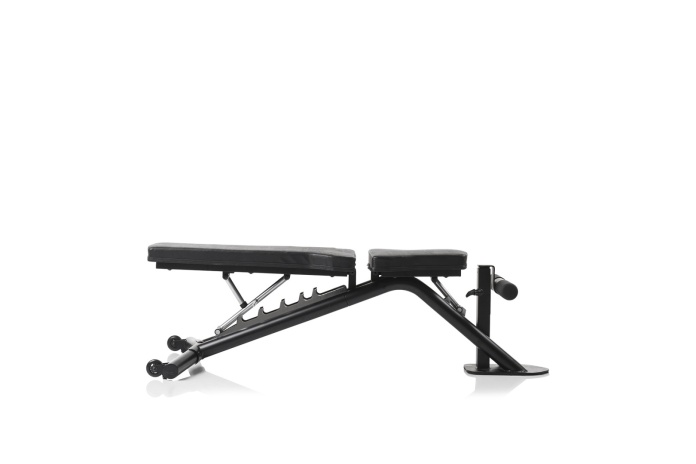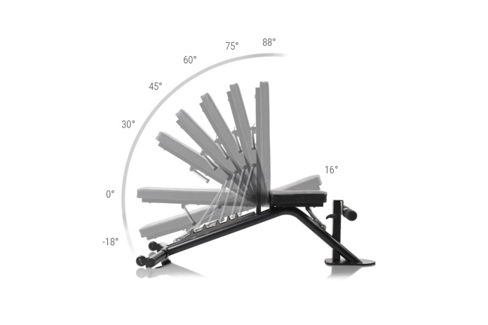 Regulowana, kompaktowa ławka treningowa wytrzymuje obciążenie do 300 kg. Oparcie jest elastyczne i posiada regulację w wielu pozycjach (0°, 15°, 30°, 45°, 60°, 80°, -15°). Dzięki uchwytom oraz rolkom transportowym można ją w kilka sekund ustawić w odpowiedniej pozycji lub odsunąć. Miękkie poduszki siedziska i oparcia zapewniają komfort oraz odpowiednie podparcie podczas ćwiczeń. Ławka ma kompaktowe wymiary - 140 x 59 x 120 cm w pozycji pionowej lub 40 cm wysokości w pozycji poziomej.