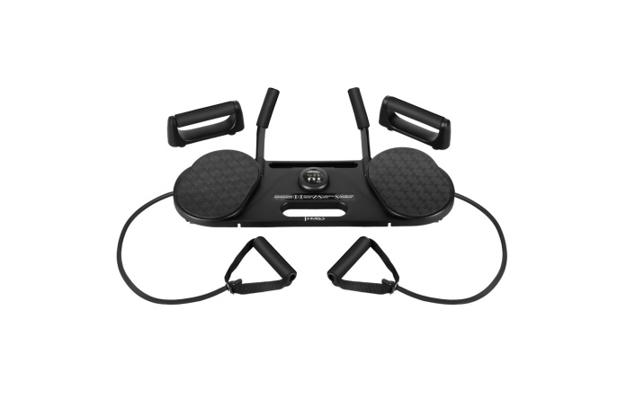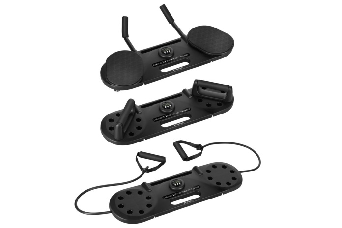 Umożliwia wykonywanie pompek w wariantach wąskim, klasycznym, szerokim oraz z rotacją uchwytów; planków statycznych oraz z przesuwem przód-tył lub bok-bok (z kółkami); rolloutów na przedramionach (z kółkami); wiosłowania gumą, unoszenia bokiem, uginania ramion i odwodzenia taśmy.