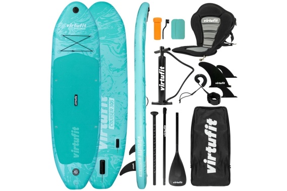 Chcesz połączyć trening na stojąco z wygodą wiosłowania na siedząco? VirtuFit Supboard Cruiser 305 (305 × 76 × 15 cm) to nadmuchiwany SUP, który dzięki dołączonemu siedzisku kajakowemu oferuje mobilność, stabilność i wiele możliwości pływania. Grubość 15 cm oraz podwójnie obszyte krawędzie zapewniają równowagę, a maksymalne obciążenie do 180 kg pozwala korzystać z deski nawet przy dynamicznym ruchu. Dzięki lekkości i elastyczności deska gwarantuje bezpieczną i przyjemną zabawę na wodzie, niezależnie od poziomu zaawansowania użytkownika — zarówno początkujący, jak i doświadczeni użytkownicy mogą rozwijać swoje umiejętności i cieszyć się aktywnością na świeżym powietrzu.