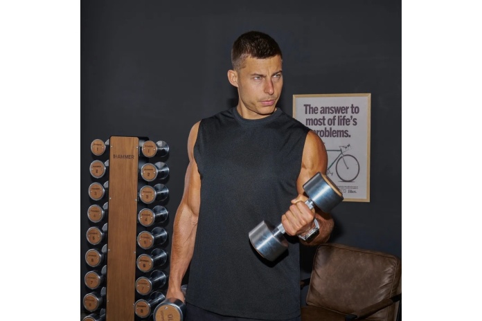 Zestaw HAMMER to połączenie nowoczesnego designu, rzemieślniczej precyzji i funkcjonalności, które wprowadza elegancję do każdej siłowni domowej lub studia fitness. Dzięki pionowemu stojakowi wszystkie hantle mają swoje miejsce, a przestrzeń treningowa zyskuje wyjątkowy porządek i estetykę.