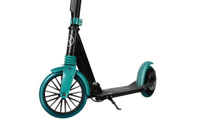 Duże kółka z poliuretanu (200 mm) w połączeniu z łożyskami ABEC-9 gwarantują cichą i stabilną jazdę również po nierównych nawierzchniach. Dodatkowa amortyzacja przednia zwiększa wygodę podczas jazdy, a szeroki podest o wymiarach 46 × 12 cm zapewnia pewne i stabilne podparcie.