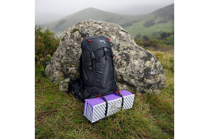 Rdzeń maty wykonano z pianki XPE, która wyróżnia się odpornością na odkształcenia oraz uszkodzenia mechaniczne. Materiał nie chłonie wody, dzięki czemu mata pozostaje sucha nawet w trudnych warunkach terenowych.