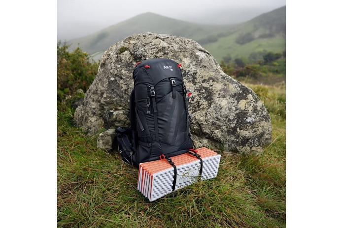 Rdzeń maty wykonano z pianki XPE, która wyróżnia się odpornością na odkształcenia oraz uszkodzenia mechaniczne. Materiał nie chłonie wody, dzięki czemu mata pozostaje sucha nawet w trudnych warunkach terenowych.