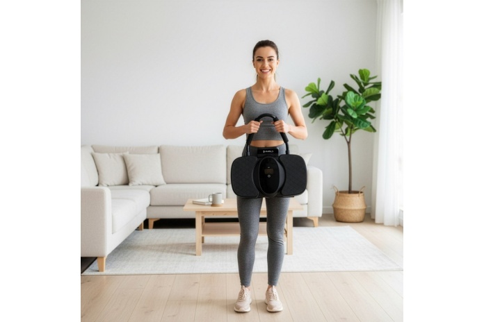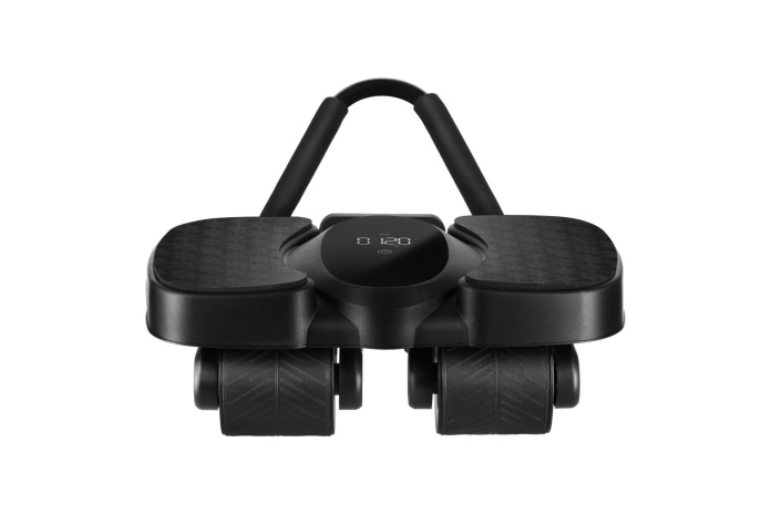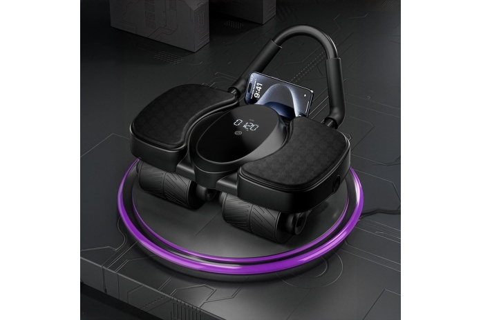 Mechanizm automatycznego powrotu (double rebound) ułatwia utrzymanie płynnego ruchu i odciąża nadgarstki oraz barki, co czyni sprzęt odpowiednim dla początkujących. Czterokołowa konstrukcja zwiększa powierzchnię styku z podłożem, zapewniając wyższą stabilność i równomierne rozłożenie sił. Szerokie podparcie łokci pozwala na komfortowy ślizg bez nacisku na dłonie, a koła o szerokości 9,4 cm minimalizują ryzyko przewrotu i dzięki gumowym bieżnikom chronią podłogę. Licznik LCD mierzy czas (min:s), liczbę powtórzeń oraz szacowane kalorie. Ładowanie USB-C (kabel w zestawie) ułatwia zasilanie urządzenia, natomiast uchwyt na telefon pozwala korzystać z aplikacji treningowej lub muzyki podczas ćwiczeń. Szybki montaż na zatrzask upraszcza przygotowanie do treningu, a nowoczesny design zwiększa atrakcyjność sprzętu.