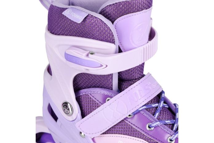 • ŁYŻWOROLKI LED + OCHRANIACZE MOONBEAM FIOLETOWE ROZM. L(39-42) ZESTAW NA0189 /NILS EXTREME