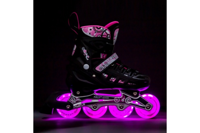 ŁYŻWOROLKI REGULOWANE RÓŻOWE 4W1 ŚWIECĄCE KÓŁKA LED NH10905 ROZM. L (39-42) /NILS
