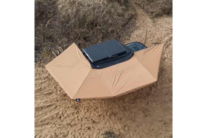 Markiza wolnostojąca do samochodu BATWING+ to świetny sposób na zagospodarowanie przestrzeni wokół samochodu. Zadaszenie rozciąga się wokół samochodu aż na 270°, tworząc dużą, zacienioną przestrzeń, gdzie spokojnie odpoczniesz w upalne dni. Dzięki temu, że markiza posiada całkowicie składane nóżki, możesz w pełni wykorzystać całą przestrzeń. Bez problemu zmieścisz tam krzesła, stół turystyczny czy lodówkę termiczną. W deszczowy poranek solidna, wodoodporna tkanina (PU 2000 mm) zapewni Ci suchą powierzchnię, gdzie przygotujesz śniadanie, lub spędzisz czas relaksując się, oddychając świeżym powietrzem.