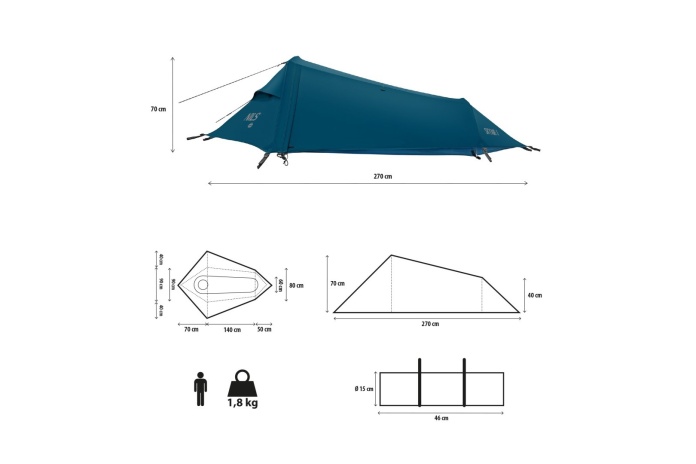 Po spakowaniu namiot mieści się w praktycznym pokrowcu kompresyjnym o długości 46 cm i średnicy 15 cm. Dzięki temu można go łatwo przytroczyć do roweru, umieścić w plecaku trekkingowym lub spakować do kajaka. To rozwiązanie stworzone dla podróżników, którzy potrzebują wygodnego i niezawodnego miejsca do spania w różnych warunkach.