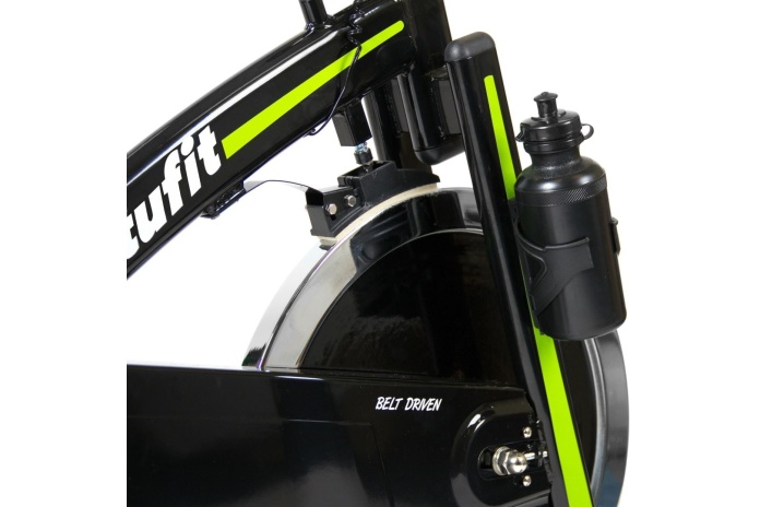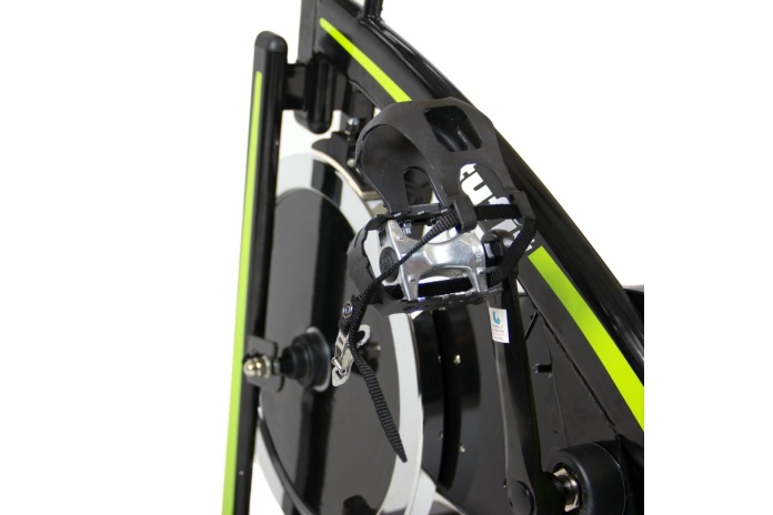 Wbudowany komputer treningowy umożliwia kontrolę najważniejszych parametrów, takich jak czas, prędkość, dystans, liczba obrotów na minutę, tętno oraz spalone kalorie. Pomiar pulsu odbywa się za pomocą opcjonalnego pasa na klatkę piersiową, co pozwala precyzyjnie kontrolować intensywność ćwiczeń. Rower waży 41,5 kg, jest przeznaczony dla użytkowników o wadze do 135 kg, a napęd zapewnia cichą i płynną pracę. Pedały z noskami, hamulec bezpieczeństwa, regulowane nóżki poziomujące oraz uchwyt na bidon zwiększają komfort i bezpieczeństwo podczas ćwiczeń.