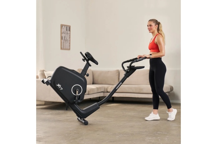 Rower CARDIO XT7 został zaprojektowany z myślą o wygodzie i łatwej obsłudze. Niska rama umożliwia swobodne wsiadanie i zsiadanie, co jest szczególnie istotne dla osób starszych lub o ograniczonej mobilności. Regulowane w poziomie siodełko pozwala na idealne dopasowanie pozycji, a wąski rozstaw pedałów (Q-faktor 22 cm) wspiera naturalny, zdrowy ruch bioder i kolan. Wielopozycyjne uchwyty kierownicy umożliwiają zmianę chwytu i utrzymanie prawidłowej postawy w trakcie ćwiczeń.