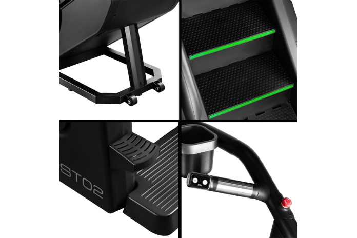 ST02 rejestruje parametry treningowe, takie jak prędkość, liczba kroków, wysokość, czas, spalone kalorie, puls oraz zawartość tkanki tłuszczowej. Dzięki temu użytkownik może monitorować swoje postępy i dopasowywać trening do własnych celów. Wbudowana bezprzewodowa ładowarka umożliwia wygodne korzystanie z urządzeń mobilnych podczas ćwiczeń. Obsługę ułatwia intuicyjny panel LED z przyciskami regulacji prędkości oraz przyciskiem start/stop umieszczonym na kierownicy.