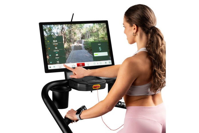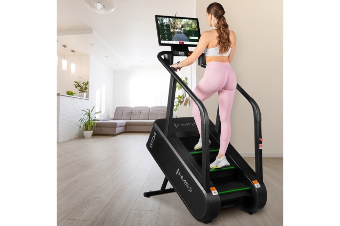 Schody rejestrują liczbę kroków, czas treningu, prędkość, puls, moc, BMI i spalone kalorie, umożliwiając bieżące monitorowanie postępów. Intuicyjny panel sterowania umieszczony na uchwytach pozwala szybko uruchomić trening, zatrzymać go lub zmienić poziom oporu.