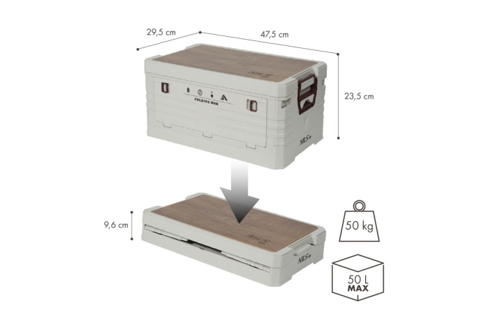 • SKŁADANA SKRZYNIA KEMPINGOWA Z FUNKCJĄ STOŁU 2W1 50L NCB4002 /NILS CAMP