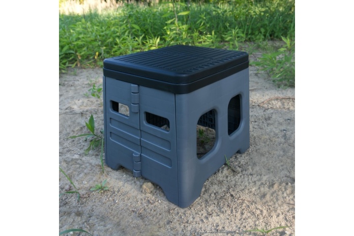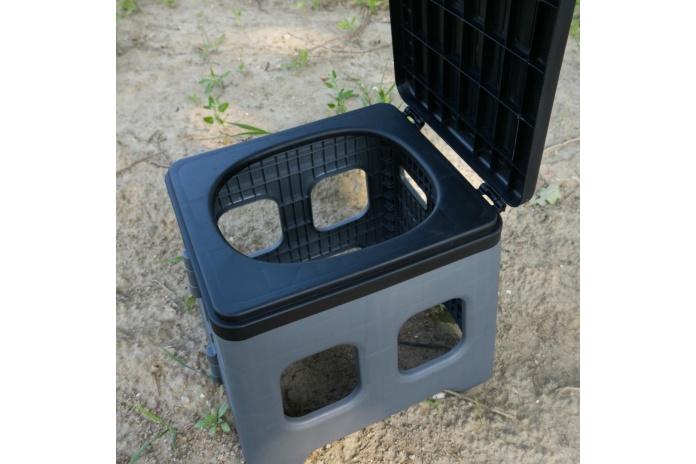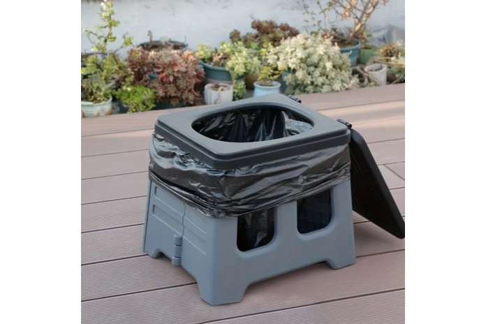 Wytrzymała rama z tworzywa odpornego na warunki atmosferyczne zapewnia stabilność, a antypoślizgowe nóżki trzymają się podłoża, niezależnie, czy jesteś na kempingu, w lesie czy na kamienistej plaży. Wewnątrz montujesz biodegradowalny worek (lub klasyczny wkład), dzięki czemu całość jest higieniczna i łatwa do utrzymania w czystości.
