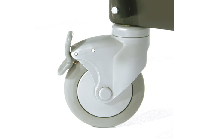 KÓŁKA Z HAMULCAMI: Mobilność stołu ułatwiają specjalne kółka z łożyskami kulkowymi, które umożliwiają łatwe przemieszczanie na różnych powierzchniach wewnętrznych, jednocześnie chroniąc delikatne podłogi w salach sportowych. Cztery hamulce z blokadą kierunkową zapewniają, że stół pozostanie na swoim miejscu, niezależnie od podłoża, na jakim jest ustawiony.