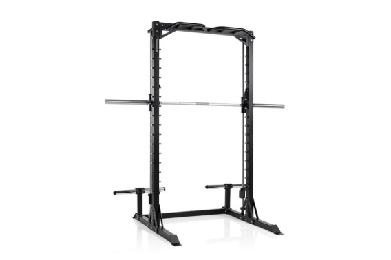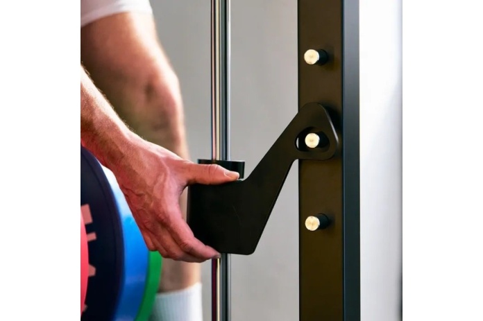 Zintegrowany drążek do podciągania z wieloma uchwytami typu multigrip umożliwia różnorodne warianty ćwiczeń górnych partii ciała. Wytrzymała rama pozwala wykonywać podciąganie również z dodatkowym obciążeniem. Cztery uchwyty na talerze pomagają utrzymać porządek w strefie treningowej i zapewniają szybki dostęp do obciążeń.