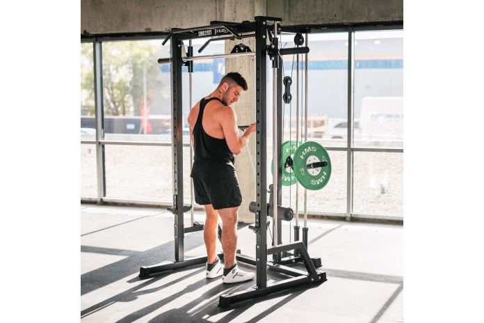 SWC3101 łączy w sobie trzy urządzenia: suwnicę Smitha, klatkę pod sztangę (half-rack) oraz wyciągi górny i dolny. Pozwala trenować praktycznie wszystkie partie ciała – od ruchów siłowych po ćwiczenia izolowane. Urządzenie oferuje:
