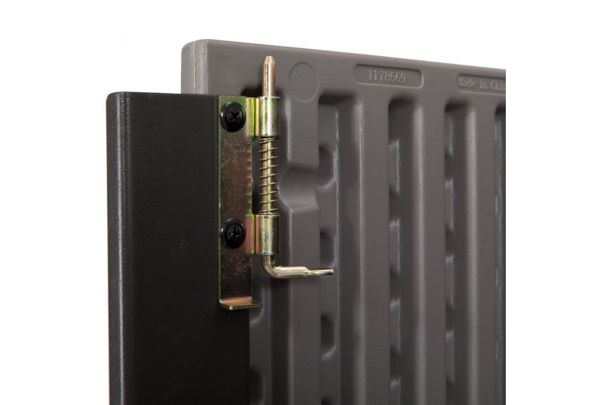 Zamykane podwójne drzwi zabezpieczone dwiema zasuwami w lewym skrzydle oraz jedną zasuwką z przodu, którą można dodatkowo zabezpieczyć kłódką.