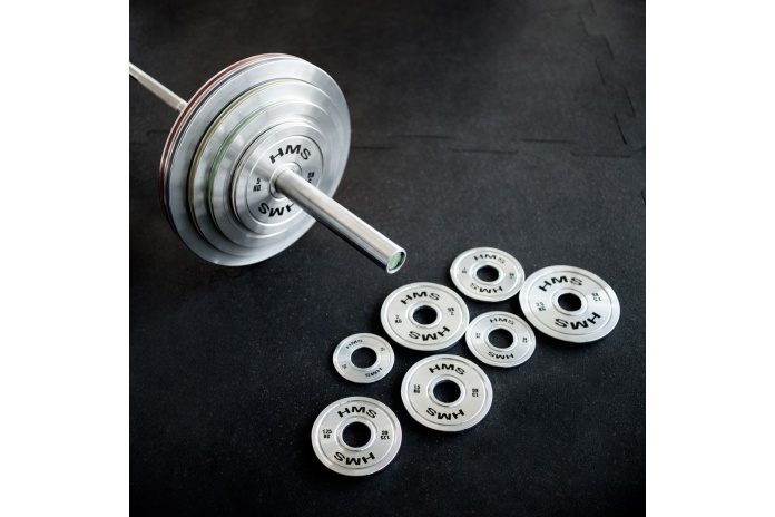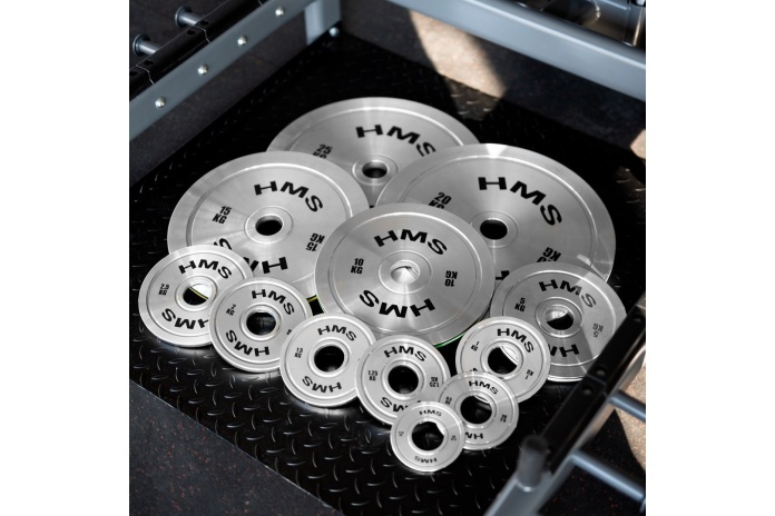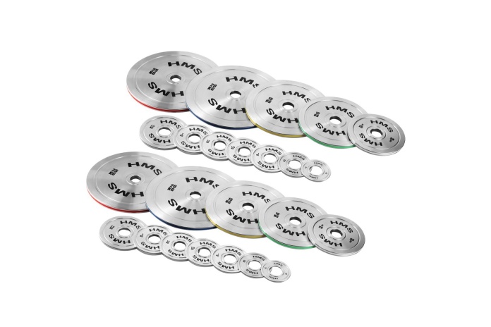 0,25 kg, 0,5 kg, 1 kg, 1,25 kg, 1,5 kg, 2 kg, 2,5 kg, 5 kg, 10 kg, 15 kg, 20 kg oraz 25 kg, co umożliwia stopniowe zwiększanie ciężaru i precyzyjne dopasowanie treningu do indywidualnych potrzeb.